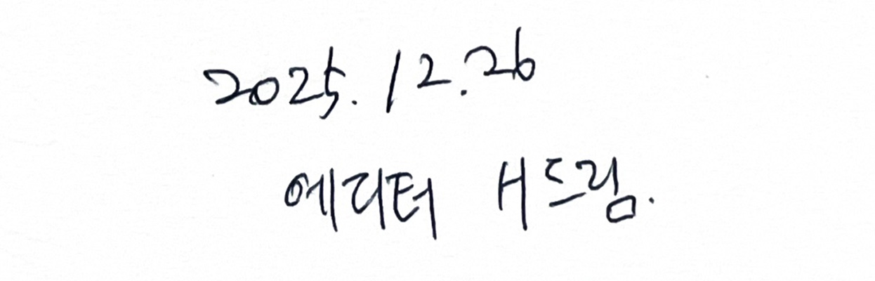 크리스마스 잘 보내셨나요, 여러분. 저는 24일 수요일 저녁부터 29일 월요일 아침까지. 짧다면 짧고, 길다면 긴 이 연휴 동안 한 해를 잘 정리해 보고자 합니다. 메일이 갈 때쯤이면 26일 아침일 테니 올여름까지는 정리를 마친 시점이어야 할 텐데요. 다사다난한 2025년을 잘 보내주고 새로운 기운으로 가득 찬 2026년 보내봅시다. 늘 건강하시고요. 감기 조심하세요. |