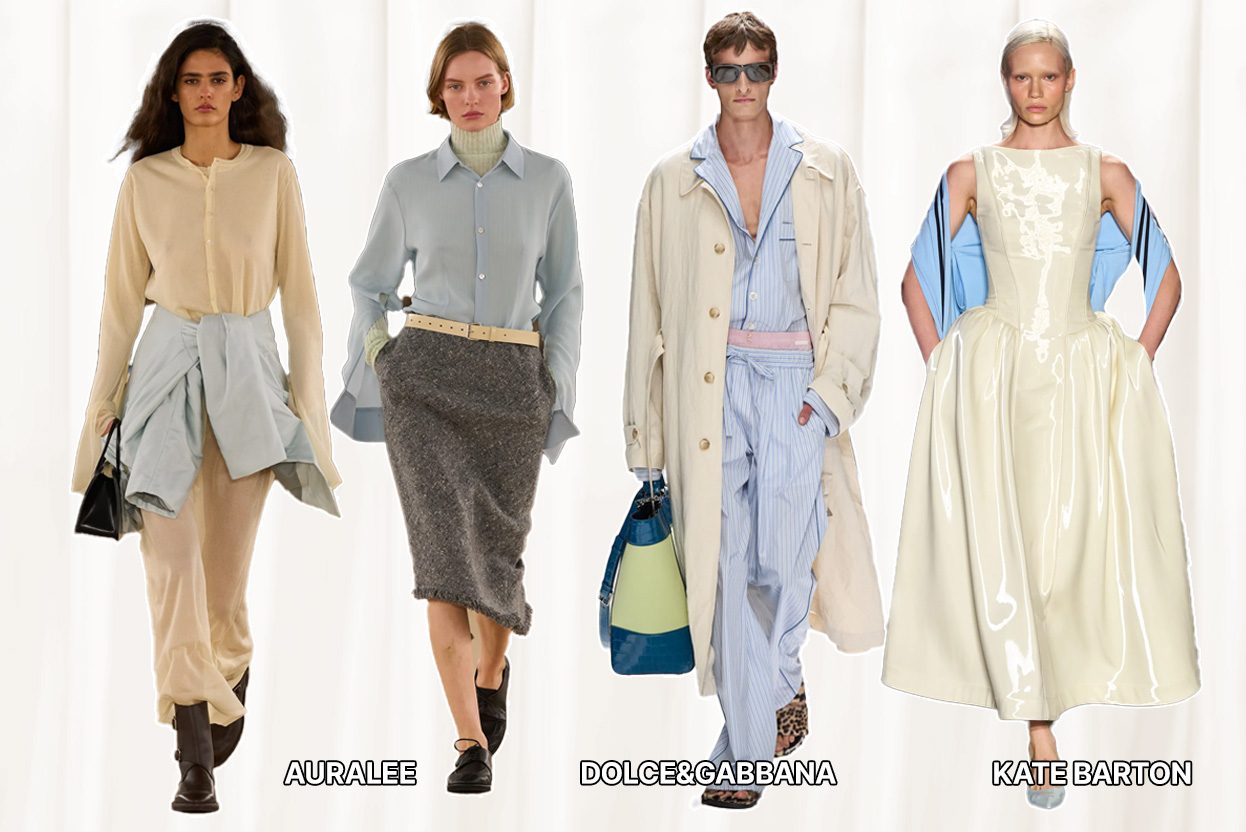 필승 조합이죠. 핑크와 스카이 블루입니다. 영화 속 아가사가 일하는 베이커리 상자와 리본의 컬러 콤비, 그리고 호텔 외관의 배색이 해당 컬러로 구성되어 있습니다. 컬렉션에서는 특히 FW26 LEMAIRE의 세 가지 컬러 배색이 눈에 띄었습니다. 핑크와 스카이 블루, 거기에 브라운까지. 기억하고 꼭 써먹어 보시길 바랍니다. |