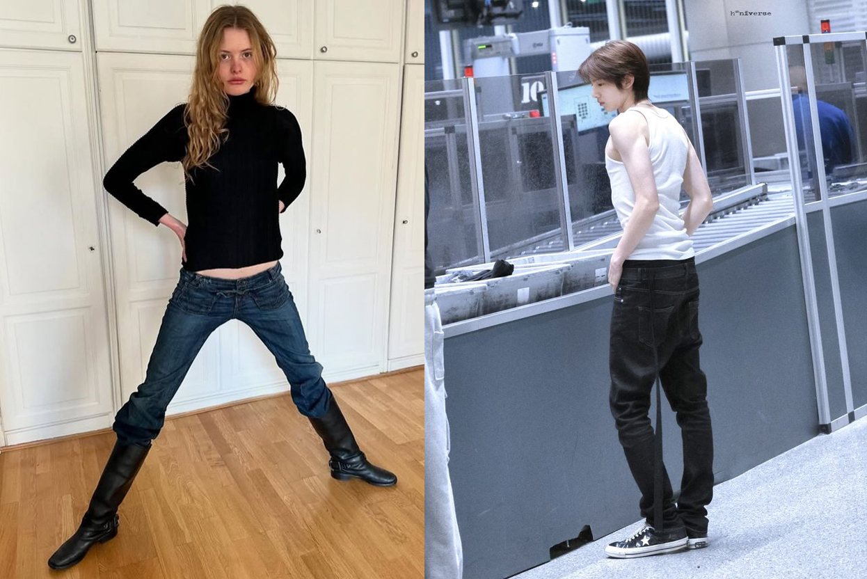 런웨이에서는 발목을 완전히 감싸는 극도로 타이트한 핏이 주를 이뤘습니다. 하지만 같은 핏을 현실에서 시도하기엔 아직 부담스럽죠. 그래서 저는 좌측 이미지처럼 부츠 안에 넣어 입기 시작했어요. 어쨌든 8년 전쯤 입던 스키니 진을 다시 꺼낸 건 사실. 우측 이미지 속 코르티스 주훈 역시 ‘울트라 스키니’만큼의 실루엣은 아닙니다. 슬림 핏의 복귀는 시작되었지만, 전면적인 장악까지는 조금 더 시간이 필요해 보여요! |